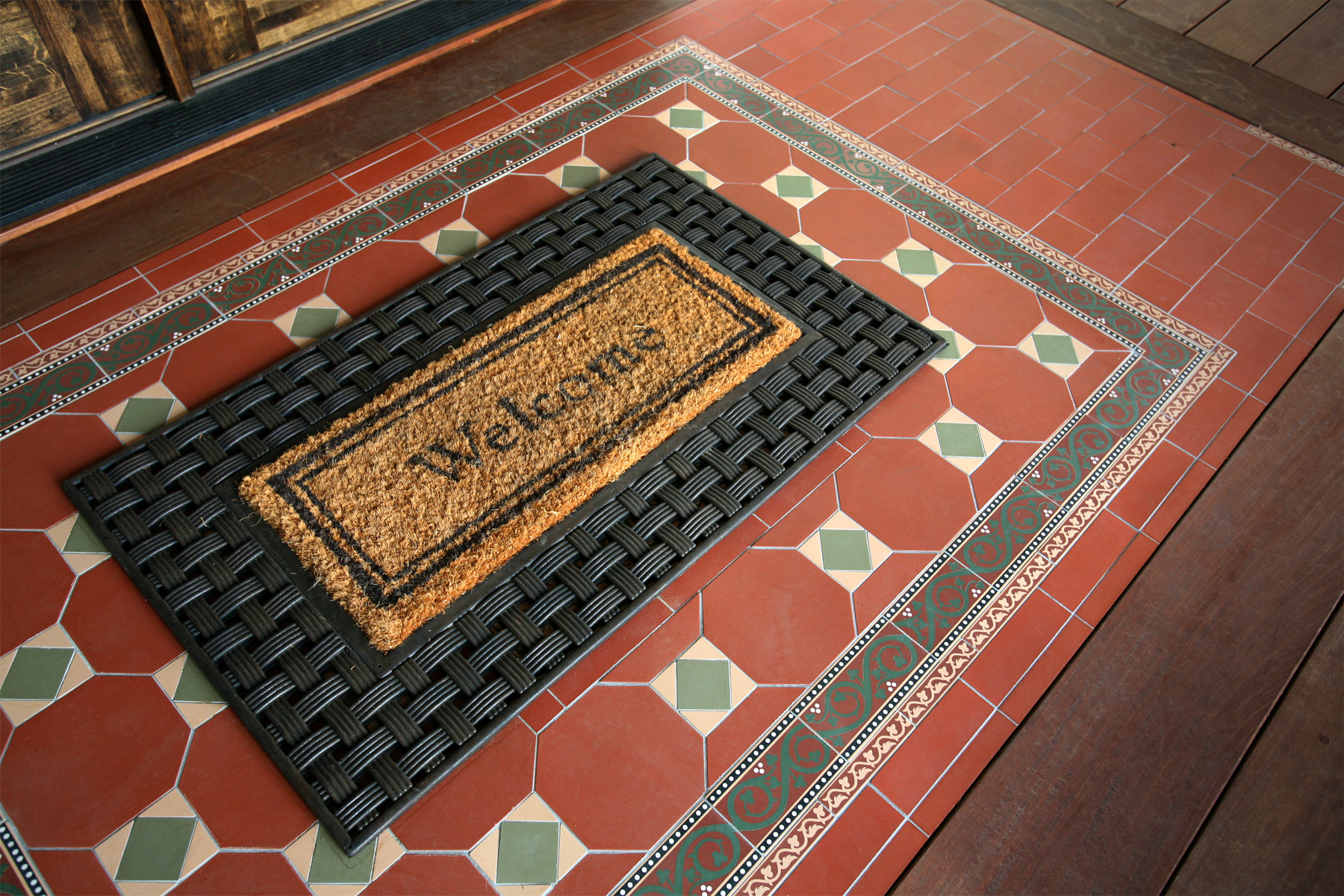 The Queen-Anne style home was always filled with a variety of intricate designs. These designs often extended to flooring and are found in the main and North entries, kitchen, Scullery, and bathrooms of this house. The actual geometric patterns are recreated from authentic Victorian cataloges from the Edwardian and Art Deco eras. Geometric tiles were originally used as ornamentation in Medieval churches, monasteries and homes of the aristocracy. The floor tiles in this house are both geometric and encaustic (meaning the design is not the result of a glaze but baked into the tile and thus will not wear away). The tile is imported from England.
